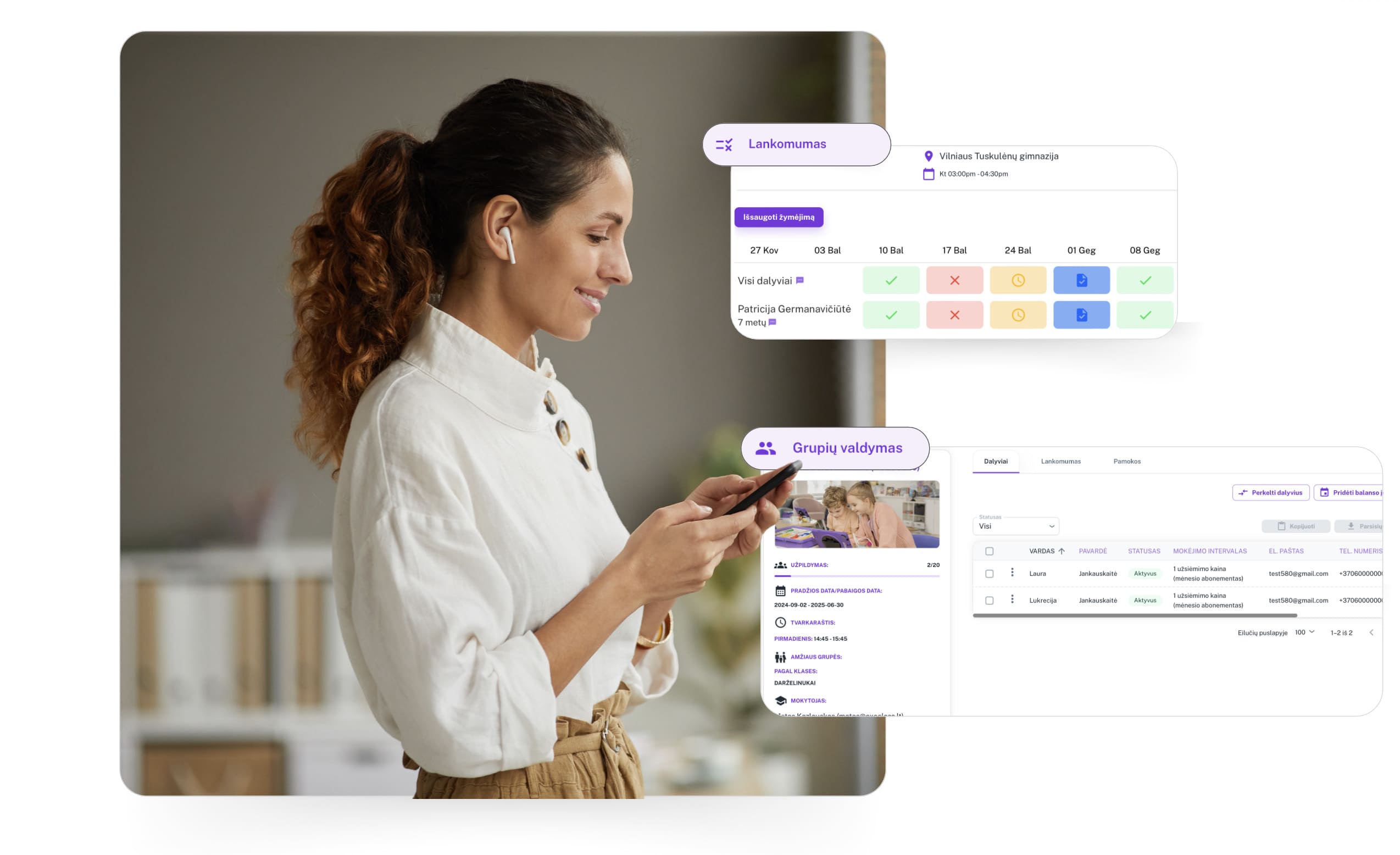 Lengvai pridėkite mokytojus, valdykite jų grafikus, apskaičiuokite atlyginimus ir užtikrinkite sklandų būrelio administravimą.